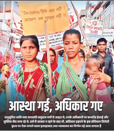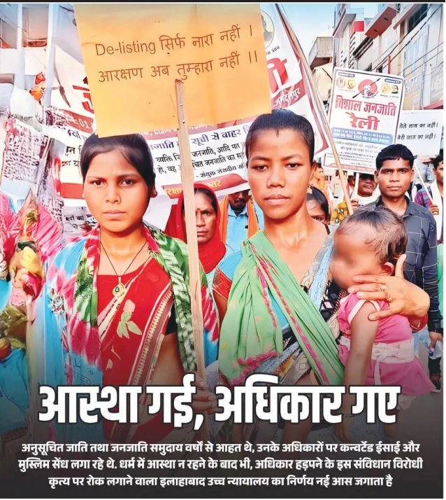 गत दिनों इलाहावाद उच्च न्यायालय ने अपने एक निर्णय में कहा कि यदि कोई व्यक्ति हिंदू धर्म छोड़कर ईसाई, इस्लाम या किसी अन्य मत-पंथ को अपना लेता है, तो वह अपनी मूल जाति का दर्जा खो देता है. और इस प्रकार वह अनुसूचित जाति (एससी) या अनुसूचित जनजाति (एसटी) के नाम पर आरक्षण का लाभ नहीं ले सकता. इसके बावजूद कोई ऐसा कर रहा है, तो यह 'संविधान के साथ घोखा' है. इसके साथ ही न्यायालय ने उत्तर प्रदेश सरकार को निर्देश दिया कि हिंदू धर्म छोड़ने के बाद भी जो लोग आरक्षण और सरकारी लाभ ले रहे हैं, उनके विरुद्ध कारवाई की जाए. यह मामला जितेंद्र साहनी बनाम उत्तर प्रदेश राज्य का है. जितेंद्र साहनी ने एक याचिका दायर कर संज्ञान/समन आदेश को रद्द करने की मांग की थी. बहस के दौरान गवाह ने अदालत में बताया कि आवेदक, जो मूल रुप से केवट जाति का हिंदू था, अब इसाई 'पादरी' वन गया है. न्यायालय ने संज्ञान लिया और बताया कि गवाह लक्ष्मण विश्वकर्मा के वयान से संकेत मिलता है कि आवेदक ने ईसाई मत स्वीकार कर लिया है और वह एक पादरी के रुप में कार्य कर रहा है. अब वह अलग पंथ को मानता है, उसे अनुसूचित जाति का सदस्य नहीं माना जाएगा. छिड़ी नई बहस न्यायालय के इस निर्णय के बाद देश में एक नई वहस छिड़ गई है. उल्लेखनीय है कि देश में बड़ी मात्रा में ईसाई मिशनरियां और तब्लीगी जमात के लोग हिंदुओं का लोभ-लालच से कन्वर्जन करा रहे हैं. और ये कन्वर्टेड लोग जनजातियों को मिलने वाले आरक्षण का ८० प्रतिशत लाभ उठा रहे हैं. बता दें कि संविधान के अनुसार अनुसूचित जातियों एवं अनूसूचित जन- जातियों को सरकारी नौकरियों में आरक्षण मिलता है और सरकार द्वारा चलाई जा रही अनेक विकास योजनाओं में भी आरक्षण दिया जाता है. इस वर्ग के लिए लोकसभा और विधानसभाओं में सीटें आरक्षित हैं. और इस सुविधा का लाभ वे लोग उठा रहे हैं जो लोभ-लालच से ईसाई या मुसलमान बन गए हैं. ये लोग समय और अवसर के हिसाब से अपने को कभी जनजाति, कभी ईसाई और मुसलमान बताते हैं. ये लोग दोहरा लाभ ले रहे हैं. इससे उन लोगों का नुकसान हो रहा है, जो वास्तव में अपनी प्राचीन परंपरा का पालन करते हैं यानी जो लोग सनातन संस्कृति के उपासक हैं. अधिकारों पर कब्जा एक अध्ययन के अनुसार आईएएस, आईपीएस, आईएफएस और भारतीय वन्य सेवा में जितने ईसाई जा रहे हैं, वे पहले जनजाति थे. यानी अब ८० प्रतिशत ईसाई और २० प्रतिशत ही जनजाति के लोग हैं. जनजाति से ईसाई या मुसलमान बने लोग संविधान के अनुच्छेद ३४२ का लाभ उठाते हैं क्योंकि इसमें जनजातियों के लिए किसी मत या पंथ की चर्चा नहीं की गई है. कहा गया है कि ये लोग एक ही संस्कृति के उपासक हैं. यही संस्कृति शब्द कन्वर्ट हुए लोगों के लिए कवच बना हुआ है. वहीं दूसरा अनुच्छेद ३४१ कहता है कि यद कोई जनजाति ईसाई या मुसलमान बनता है तो उसे 